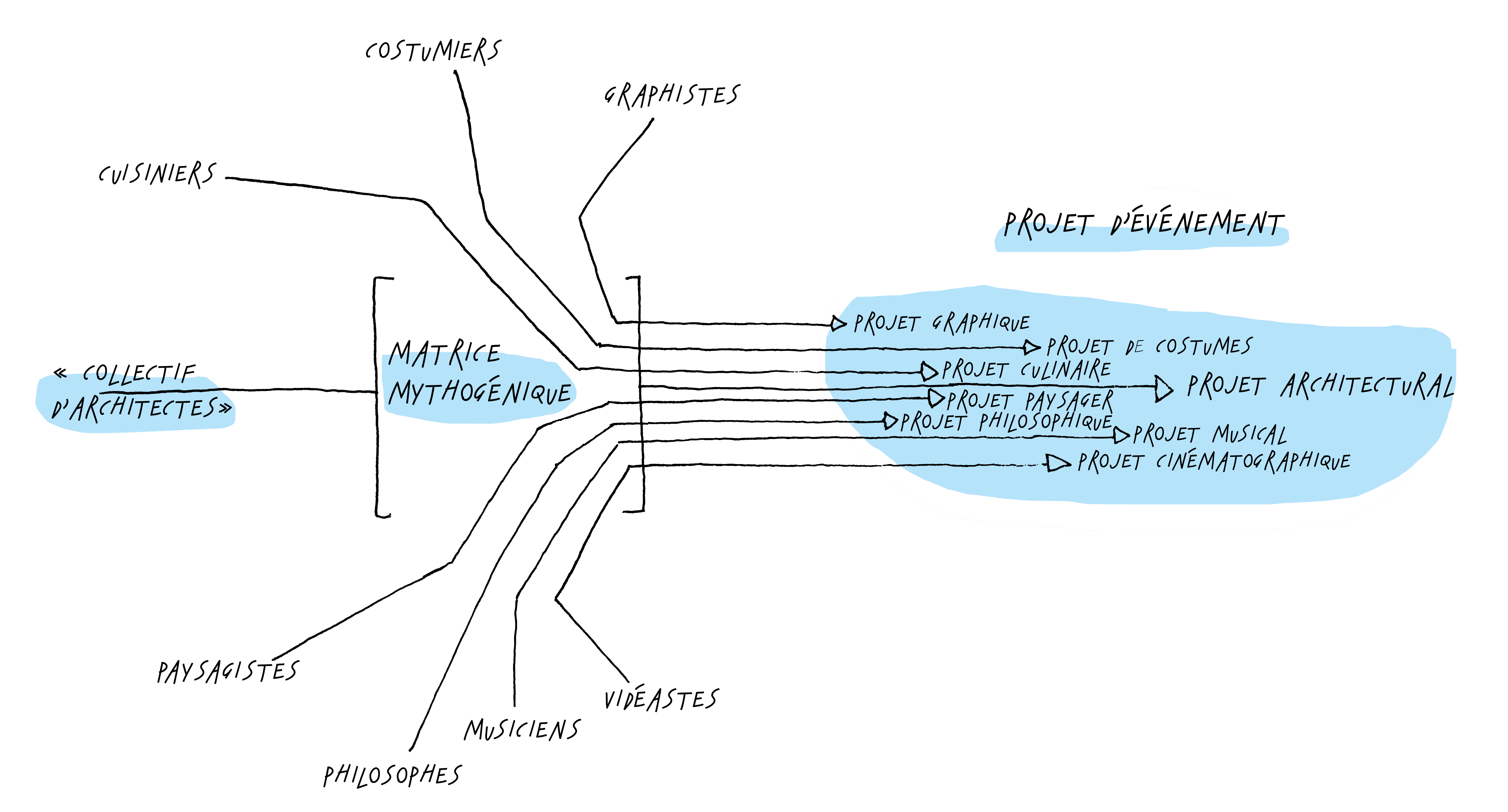 Notre objet d’étude défini, nous avons formé l’hypothèse que ces groupes développeraient un modèle original de pratique du projet, reposant sur la construction de matrices favorisant l’implication de multiples acteurs tout au long du processus du projet. Pour cela, nous sommes partis de l’analyse de plusieurs actions réalisées ces dernières années par le Collectif Etc, nous permettant de définir trois matrices successives et que nous avons appelées mythogénique, constructive, et politique. Pour chacune d’elles, une recherche historico-théorique nous a permis d’en proposer des définitions plus complètes, caractérisant une pratique matricielle du projet, favorisant l’implication citoyenne. La confrontation de cet idéal-type à l’ensemble des projets du Collectif Etc, puis à des actions menées par les membres de notre corpus restreint de « collectifs d’architectes » nous a permis de confirmer la pertinence de ce modèle. Et si la concomitance de ces trois matrices ne se trouvent qu’être exceptionnelle, il nous a permis de soulever quelques limites aux projets réalisés par ces groupes. Enfin, si ce modèle a été construit sur la base de la pratique particulière de ces groupes, nous pensons qu’il pourrait se révéler pertinent à l’ensemble des praticiens souhaitant impliquer divers acteurs dans les processus de fabrique de la ville.