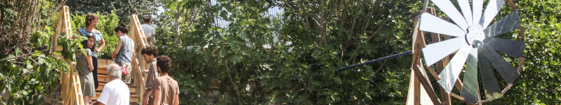 – une passerelle escalier permettant de relier les deux espaces, les parcelles cultivées et le jardin du café