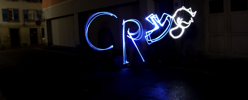 Différentes sources lumineuses sont à disposition afin de découvrir en toute simplicité cette pratique photographique méconnue. Les photos projetées en grand format permettent d’observer immédiatement le résultat. Ainsi les passants sont invités à entrer dans cette rue en coulisse de la Grand Rue autour d’une boisson chaude et d’une ambiance sonore et visuelle. A présent muni de sa petite lumière et guidé par les photographes, on avance dans la ruelle sombre en observant, jouant et dansant avant de reprendre son chemin.