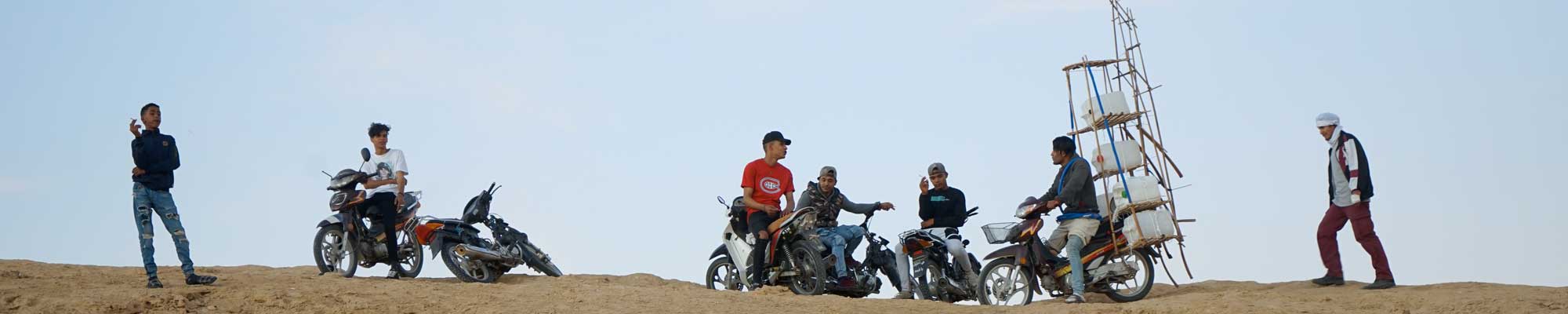 On apprend la construction traditionnelle de mobilier en sig (tige de feuille de palmier). On joue avec les codes des marchands de carburant, on fait rouler nos installations sur les petites motos qui sont ici omniprésentes et sont les seuls véhicules motorisés à sillonner les petites rues sinueuses de la médina.