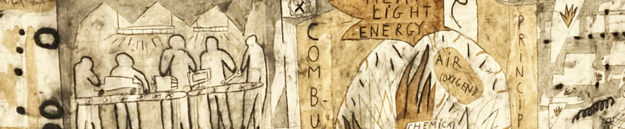Beuys did have a sense for storytelling, fiction and mystery. That’s why we invited the artist Marion Jdanoff to draw huge medieval-like fabrics based on stories about fire we gathered during the workshop. This led also to a fanzine and all were related to four contemporary themes we discussed : Gathering-fire, Riot-fire, Energy-fire and Mega-fire.