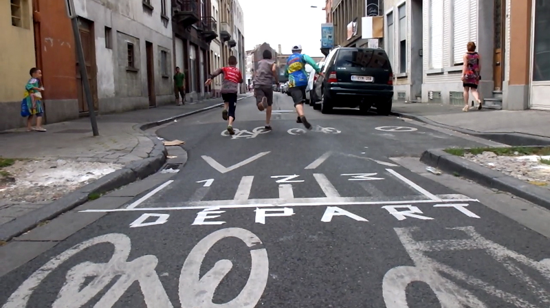 Pour cette dernière phase nous avons mis en scène un évènement pendant 1 semaine : les Jeux Olympiques d’Anderlecht. Le principe était de mobiliser les gens du quartier dans l’aménagement du jardin et la valorisation d’espaces publics alentours, par le biais d’animations sportives quotidiennes. Le quartier a été transformé en village olympique pendant deux semaines : Le jardin, c’était le stade dans lequel la remise des médailles avait lieu après chaque épreuve. Les jeunes courges et potirons ont vus se dresser devant eux tribunes olympiques et piste d’athlétisme. Sur un rayon de 500 m autour du Stade/Jardin, cinq lieux dans le quartier ont successivement accueilli une épreuve sportive par jour. Ont participé à ces épreuves les enfants, des passants et des associations de quartier. Nous avions choisi ces endroits pour leurs intérêts urbains et comme pour le stade, nous y avons installé du mobilier urbain déguisé en équipements sportifs. Un journal télévisé quotidien retranscrivais le déroulement des épreuves et un site internet spécifique a été créer pour communiquer sur l’évènement : http://anderlecht2012.tumblr.com/