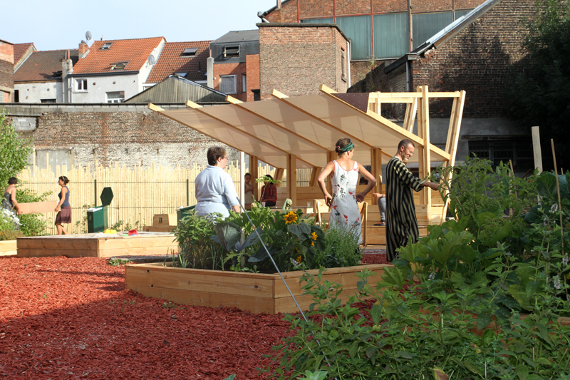 Le cadre de Parckdesign 2012 nous a amené à travailler dans un lieu qui avait été proposé par la ville. Une fois que notre projet s’est trouvé sélectionné, nous sommes allé sur le terrain et avons rencontré des habitants qui ne savaient pas encore ce qui allait se passer en bas de chez eux, dans ce qu’ils considéraient comme leur « terrain vague » privé. Cependant, ils étaient la clef nécessaire à la réussite du projet. Pour cela, il a fallu réunir ces nouveaux voisins, leur expliquer le projet, leur accorder du temps, les inviter à participer, à s’impliquer. Combien de rendez-vous ? Combien de coups de gueule ? Combien de journées de permanence pour OST, les seuls bruxellois de notre équipe ? Combien de fois on a cru que la porte du jardin se refermait pour de bon ? Nous avons organisé de nombreux temps de parole et nous avons pu construire une relation de confiance avec les voisins qui prenaient progressivement conscience de l’intérêt d’un tel jardin.
