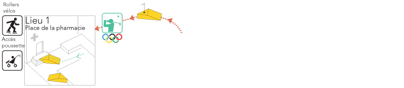– Temps 3 : Les supports pour les épreuves ont été maintenus sur place pouvant ainsi accueillir d’autres usages : assises pour les gradins, rampe d’accès pour le golf, etc.