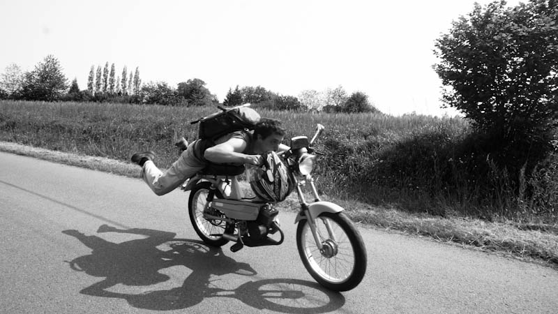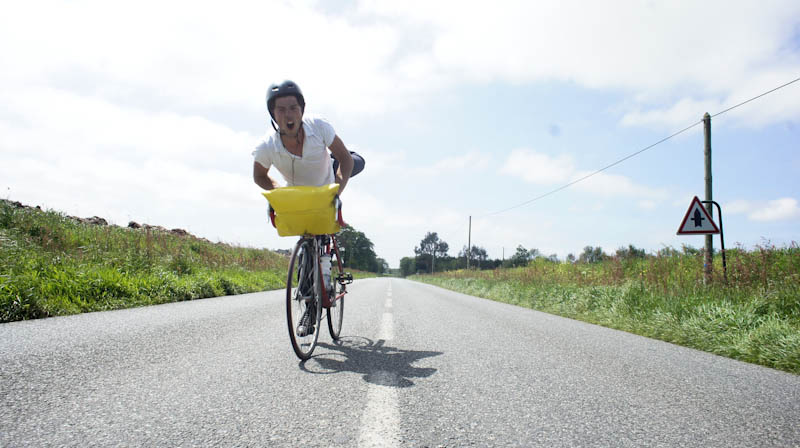 Les coureurs ont de nouveau avalé les kilomètres d’asphalte accompagnés cette fois ci de leur nouveau destrier brillant de son vert d’eau 1985 et rugissant du tonnerre en semant la terreur dans toute la région. Serres agricoles, porc indoor, artichauts, choux fleurs, blés, algues vertes, cidre maison, crêpes…. Une étape très champêtre sous le redouté soleil de Bretagne qui a infligé aux coureurs le fameux bronzage cycliste.