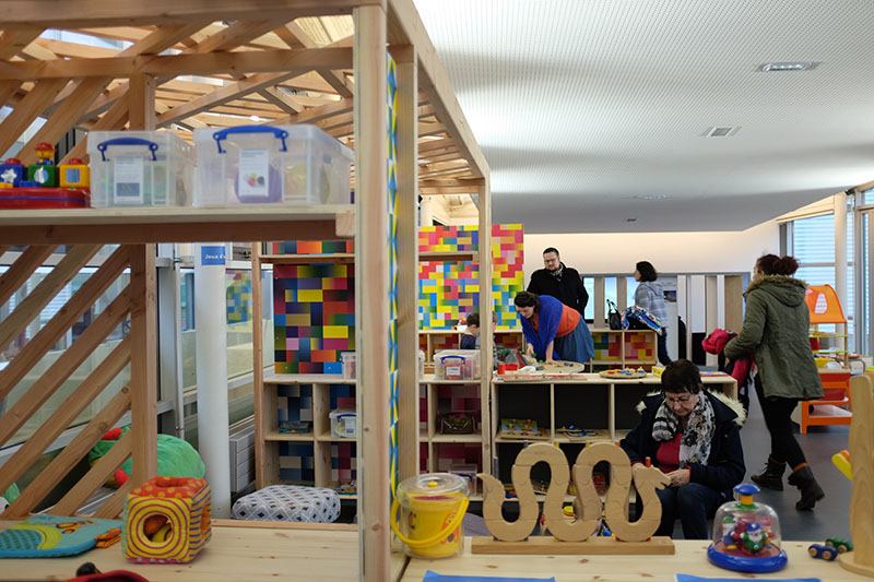 Réalisation de mobilier dans la ludothèque de la médiathèque de Saint-Herblain : une collaboration Collectif Etc et Super Terrain.
