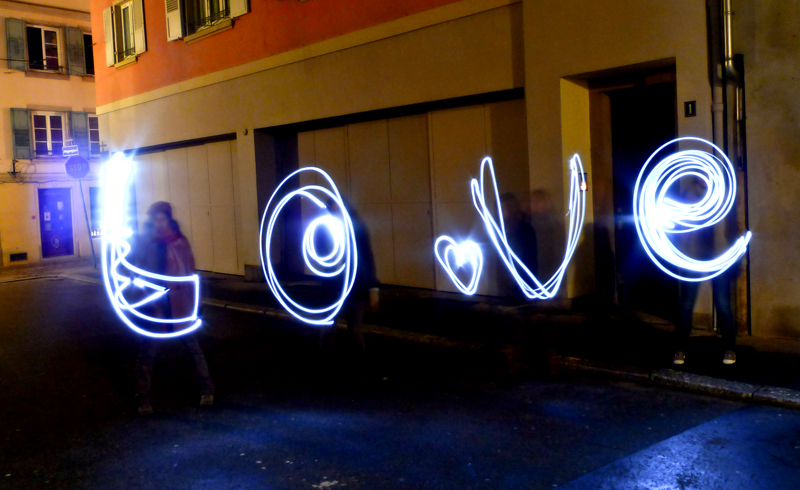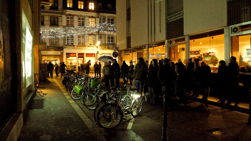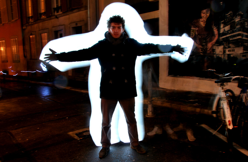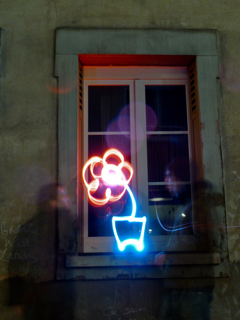 Différentes sources lumineuses sont à disposition afin de découvrir en toute simplicité cette pratique photographique méconnue. Les photos projetées en grand format permettent d’observer immédiatement le résultat. Ainsi les passants sont invités à entrer dans cette rue en coulisse de la Grand Rue autour d’une boisson chaude et d’une ambiance sonore et visuelle. A présent muni de sa petite lumière et guidé par les photographes, on avance dans la ruelle sombre en observant, jouant et dansant avant de reprendre son chemin.