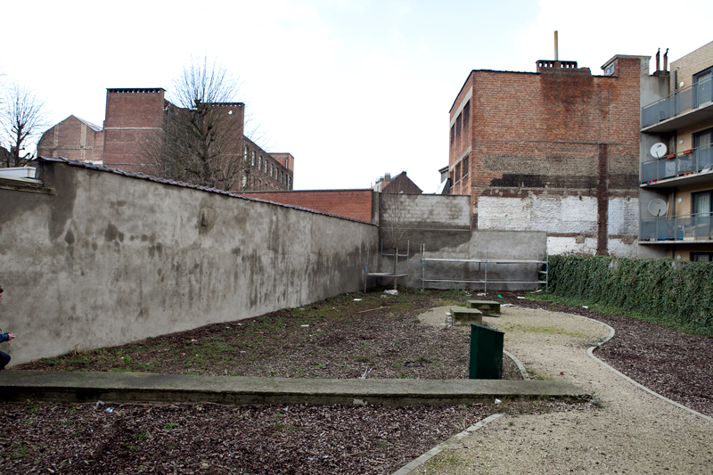 L’objectif était de transformer un de ces délaissés en un lieu partagé géré de façon collective, comportant jardins potagers, aires de vies et équipements sportifs. Cet espace est à l’écart de la rue, situé entre deux immeubles d’habitations collectifs et un centre associatif nommé le Cüro-Hall. Sa situation est tellement proche des immeubles d’habitations que leurs résidents peuvent se considérer comme usagers privilégiés. La stratégie est de s’appuyer sur ce groupe d’usagers et leur intérêt pour le jardinage afin de re-dynamiser cet espace en en faisant un lieu d’échange et de sociabilité. En mettant en place un collectif d’habitants à la fois autonome mais aussi ouvert aux autres et en diversifiant les usages, nous avons souhaité parvenir à une gestion équilibrée entre la ville de Bruxelles, ce collectif d’habitants et les autres usagers potentiels du quartier. Ce projet considère l’intervention artistique comme une entrée et il se veut aussi être social et culturel. Afin d’asseoir le projet dans la durée et d’associer les usagers concernés dans la transformation du délaissé urbain, le projet s’est déroulé en 3 phases sur une durée de cinq mois.